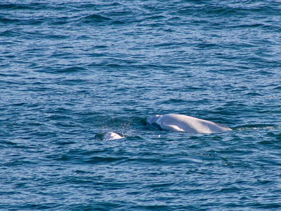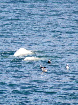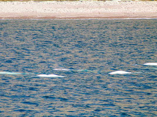 Auch für andere Wale stehen die Chancden sehr gut. Die schneeweißen Belugas mit ihre speziellen gewölbten Kopf kommen häufig vor. Auf einer Schifffahrt hatte ich das Glück in drei Gruppen rund 30 Tiere beobachten zu können. Das war großartig - auch wenn sie leider den Kopf nicht aus dem Wasser gestreckt haben. So habe ich eigentlich nur Fotos langen weißen Tieren im Wasser gemacht.