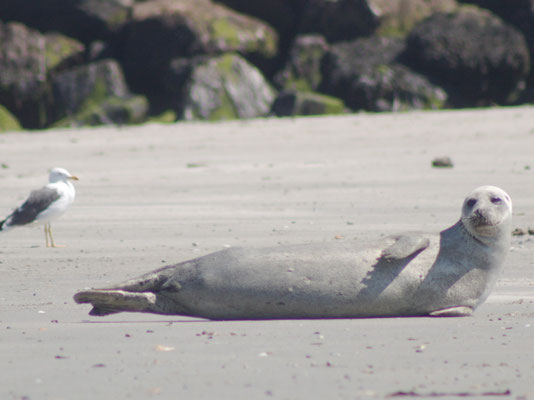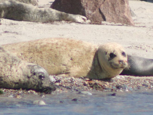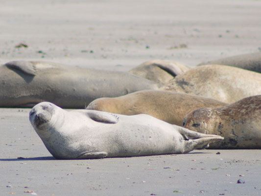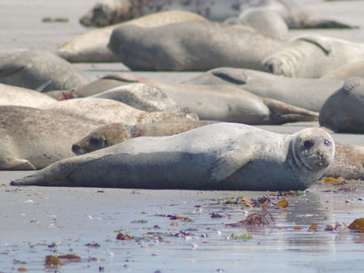Sattelrobben hätte ich zu gerne gesehen, bisher sollte es nicht sein. Ihr Aussehen ist sehr besonders. Sie haben einen schwarzen Kopf und eine schwarze Färbung von Schultern über die beiden Flanken. Im Englischen heißen sie deshalb "Harp Seal", benannt nach einer Harfe.