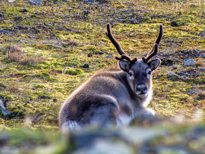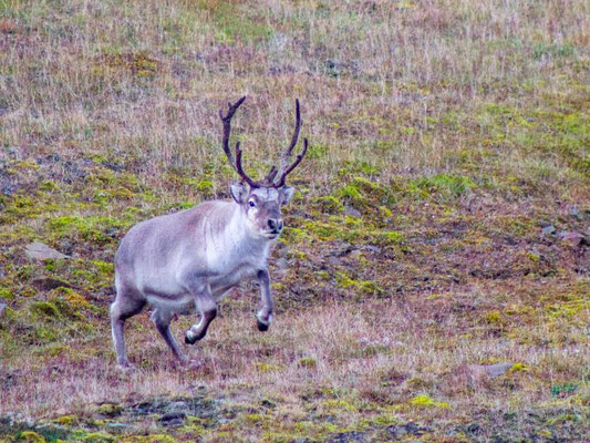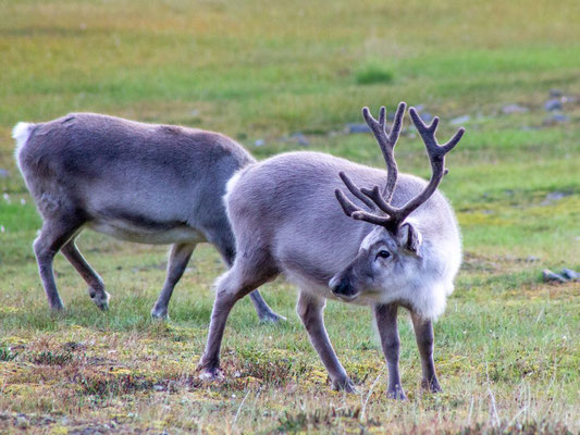 Rund 10.000 der Spitzbergen-Ren gibt es auf Spitzbergen. Sie sind kleiner, leichter und haben kürzere, dickere Beine als übliche Rentiere vom Festland und bewegen sich auch weniger. Sie haben durch Permafrost und Co nicht so viel Grünfutter zur Verfügung wie andere Rentiere und fressen daherf auch Moos und Seetang. Sie futtern sich im Sommer ordentlich Gewicht an, um den Winter überstehen zu können. Wenn die Tundra von einer Eisschicht überzogen ist, haben sie keine Möglichkeit, an Futter zu kommen. In manchen Wintern können die Rentiere nicht überleben und verhungern. Die Population kann in schlimmen Fällen um bis zu 80 Prozent in einem Winter zurückgehen. Die gute Nachricht ist allerdings, dass der Bestand stabil ist und sich dann im Sommer auch immer erholt.