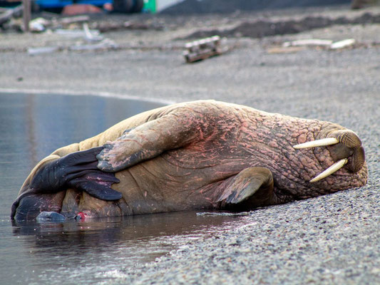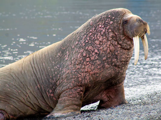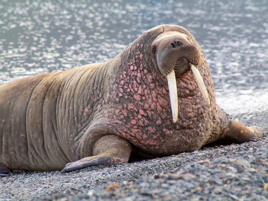 Der Eisbär gilt als König der Arktis, doch es ist nicht das größte Tier auf Spitzbergen. Das ist das Walross. Das Walross bringt bis zu 1200 Kilogramm auf die Waage.