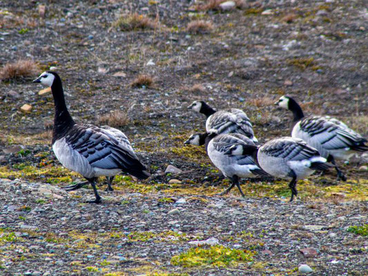 Weißwangengänse habe ich einige gesehen. Sie watscheln durch die Tundra, auch gerne in der Nähe von Longyearbyen - und gelten als Delikatesse für Polarfüchse. Kurzschnabel- und Ringelgänse leben ebenfalls auf Spitzbergen.