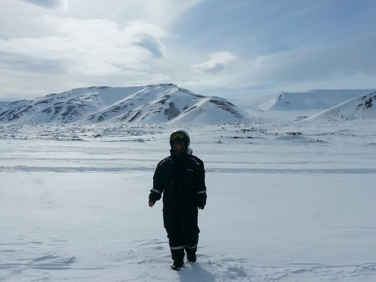 Außerdem gibt es verschiedene Schneemobil-Touren. Ich habe wie gesagt die zur Ostküste unternommen und würde sie jederzeit empfehlen. Wir haben Eisbären-Spuren, eine Ringelrobbe und mehrere Spitzbergen-Ren gesehen. Wir sind über Gletscher gefahren, haben an einem gefrorenen Wasserfall gehalten und sind durch einen Schneesturm gefahren. Es war der Wahnsinn. Oft habe ich nur Weiß gesehen!