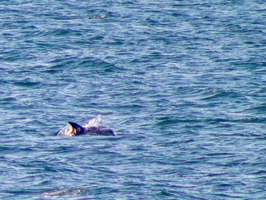 Auch häufig zu sehen sind Zwergwale, Mink Whale im Englischen. Wir haben einen gesehen, der zwischen zwei verschiedenen Beluga-Gruppen schwamm und kaum Aufmerksamkeit bekommen hat. Ich hab ihn leider nicht erwischt mit der Kamera.