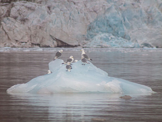 Möwen kommen in verschiedenen Arten vor. Am häufigsten sind Eismöwe und Dreizehenmöwen zu sehen. Schmarotzerraubmöwen, Spatelraubmöwen, Falkenraubmöwen, Mantelmöwen (selten) und Elfenbeinmöwe (selten) halten sich auch rund um Spitzbergen auf.