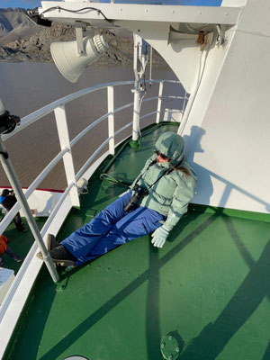 Bei meinem ersten Aufenthalt auf Spitzbergen konnte ich wegen des Eises keine Tour mit dem Schiff machen. Bei meinem zweiten Trip wurde mir der Tipp gegeben, so viel Zeit wie möglich auf dem Wasser zu verbringen. Was sich erst einmal komisch anhört, hat sich schnell bewahrheitet: Selbst Eisbären sieht man eher vom Wasser aus als vom Land, weil sie sich am Ufer rumtreiben.