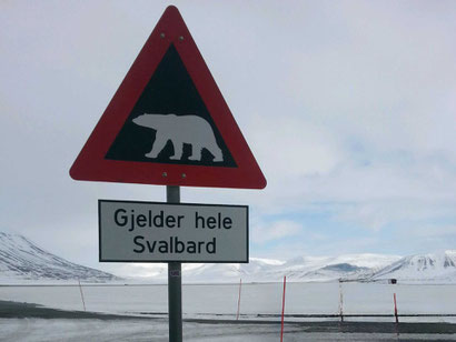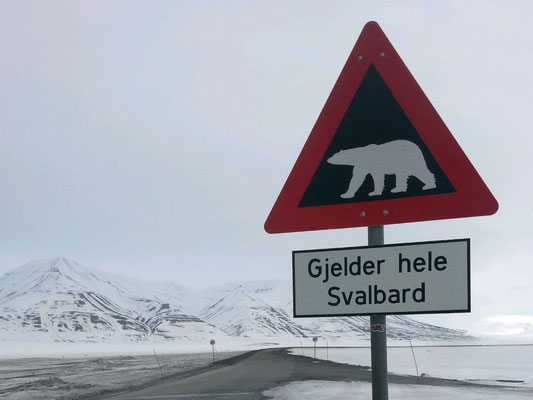 Wer Spitzbergens Hauptstadt Longyearbyen verlässt, muss einen Eisbär-Schutz mit sich führen. Etwa ein Gewehr. Hinweisschilder sagen, ab welchem Punkt das gilt. Damit sollen Zusammenstöße zwischen Menschen und den rund 3500 Eisbären, die rund um Spitzbergen leben, verhindert werden. Eisbären halten sich viel auf dem Packeis auf, aber sie sind auch auf ganz Spitzbergen anzutreffen.