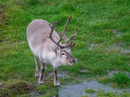 Ich bin insgesamt ein großer Fan von Rentieren. Beim ersten Besuch in Spitzbergen habe ich nur eine handvoll Spitzbergen-Ren gesehen und auch alle von weiter weg. Beim zweiten Mal allerdings konnte ich sie gar nicht zählen, so viele waren es in den fünf Tagen. Ein Spitzbergen-Ren hat quasi an unserem Gästehaus gewohnt und wir konnten abends immer vom Fenster aus gute Nacht sagen.